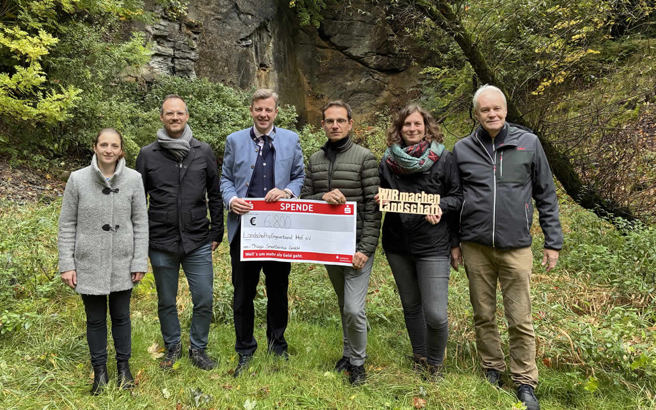 Die Thüga SmartService GmbH aus Naila unterstützt die Natur vor unserer Haustüre und die Arbeit des Landschaftspflegeverbands. Mit einer großzügigen Spende von 6.800 € wird unter anderem eine Streuobstwiese gepflanzt – ein wichtiger Beitrag zum Klimaschutz, der CO₂ bindet und Lebensraum für Insekten und Tiere schafft. Zusätzlich erhielt der LPV 5.000 € von der Thüga Aktiengesellschaft in München.