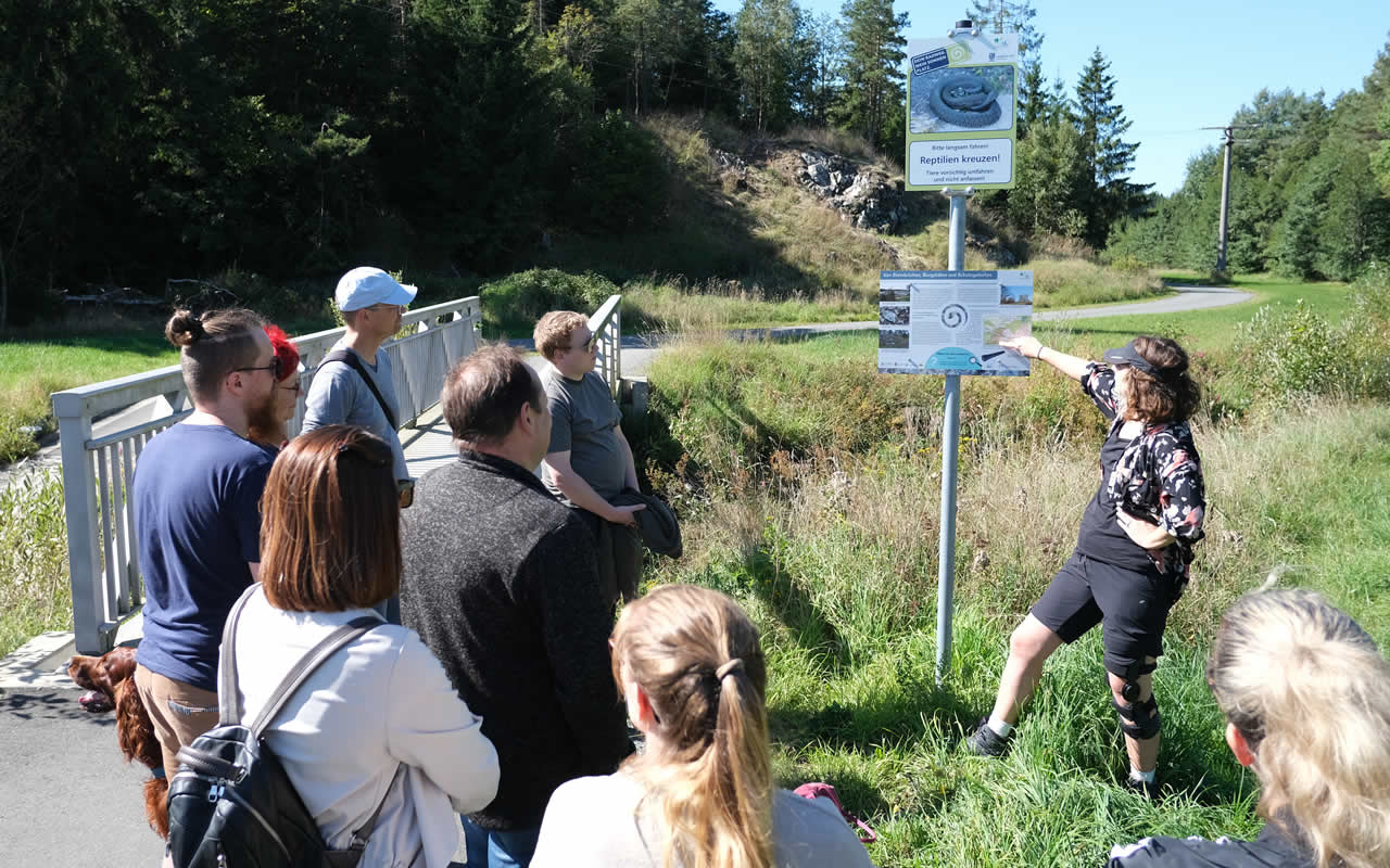 Gemeinsam wurden außerdem im Sommer drei Team-Events umgesetzt. Bei zwei- bis vierstündigen geführten Wanderungen im Höllental und entlang des Perlenbachs entdeckten die Mitarbeitenden die vielfältige Natur im Hofer Land und erfuhren, wie die Landschaftspflege zum Erhalt der artenreichen Kulturlandschaft beiträgt.