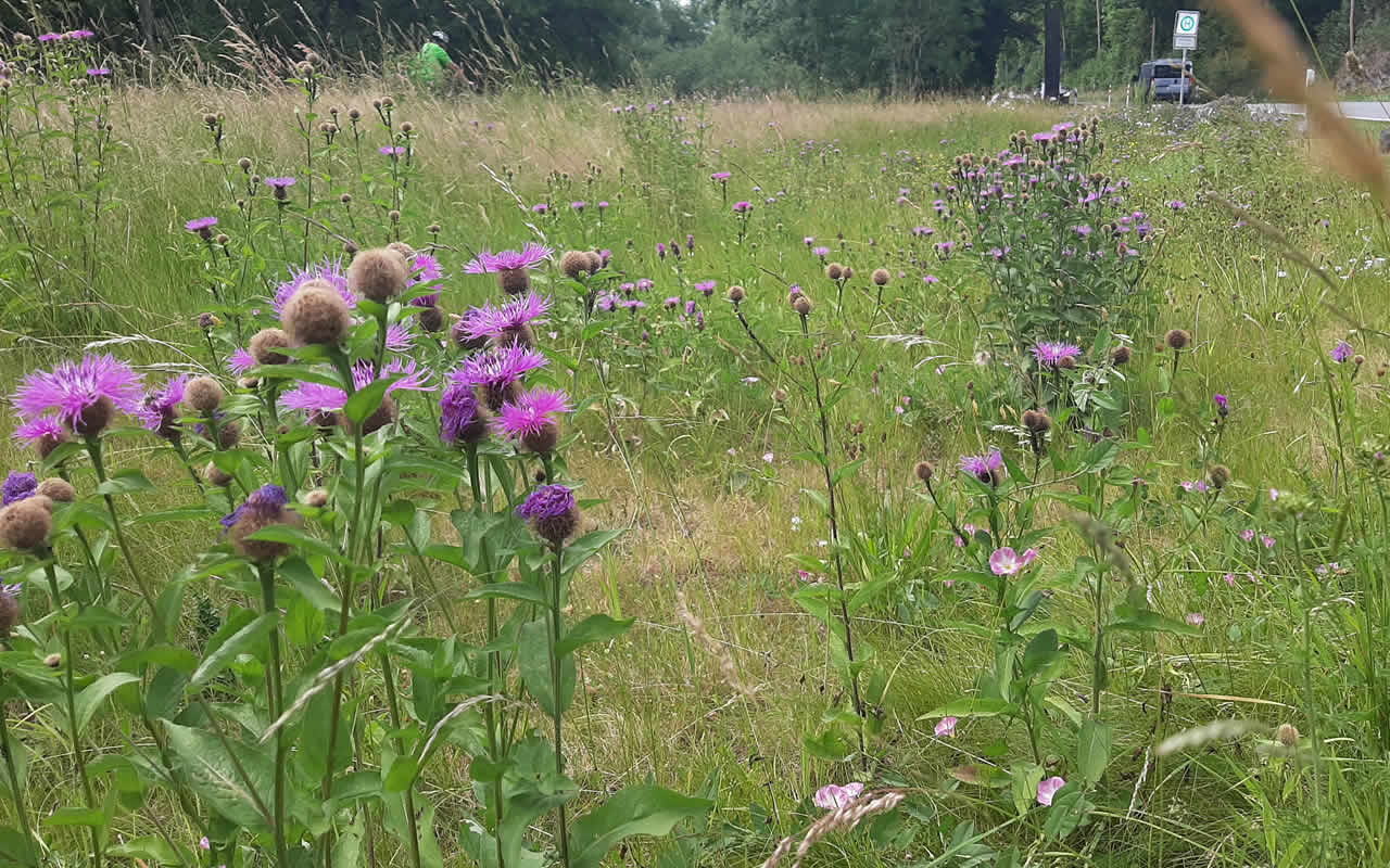 2021 bis 2023 hat sich der LPV Hof als Teil der landesweiten Initiative NATÜRLICH BAYERN für mehr blütenreiche Lebensräume auf kommunalen Flächen engagiert. Dabei wurde unter anderem diese kleine Verkehrsinsel am Saaleradweg an der Ascher Straße mit Saatgut aus dem Frankenwald angereichert. Im Sommer 2025 hat dort die gefährdete Perückenflockenblume über Wochen geblüht. Weitere Infos zum Projekt finden Sie unter Projekte/NATÜRLICH BAYERN