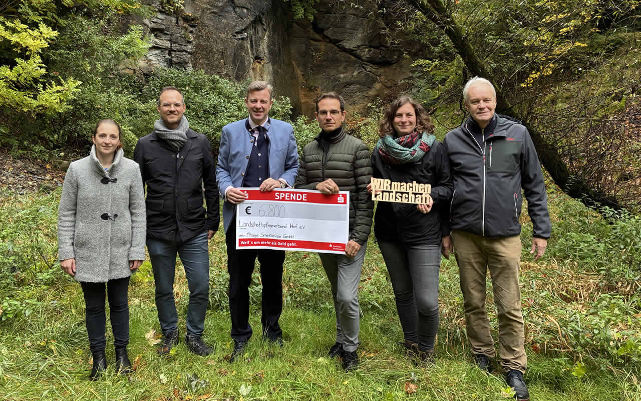 Die Thüga SmartService GmbH aus Naila unterstützt die Arbeit des LPV Hof. Mit einer großzügigen Spende von 6.800 € wurde u.a. die Pflanzung einer Streuobstwiese finanziert, die CO² bindet und Lebensraum für Insekten und Tiere bietet (Foto: Thüga). Weitere Infos zur Spende und der weiteren Zusammenarbeit mit der Thüga finden Sie unter Aktuelles